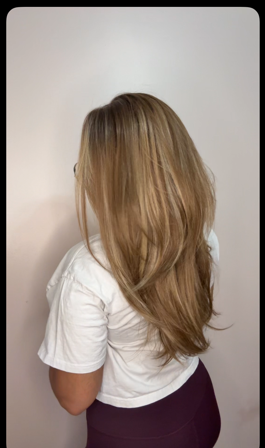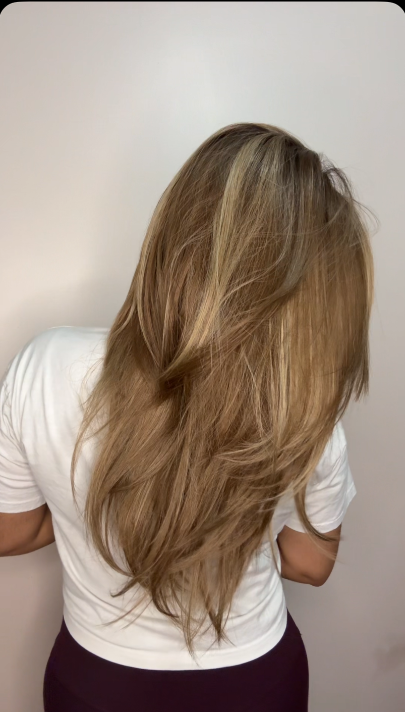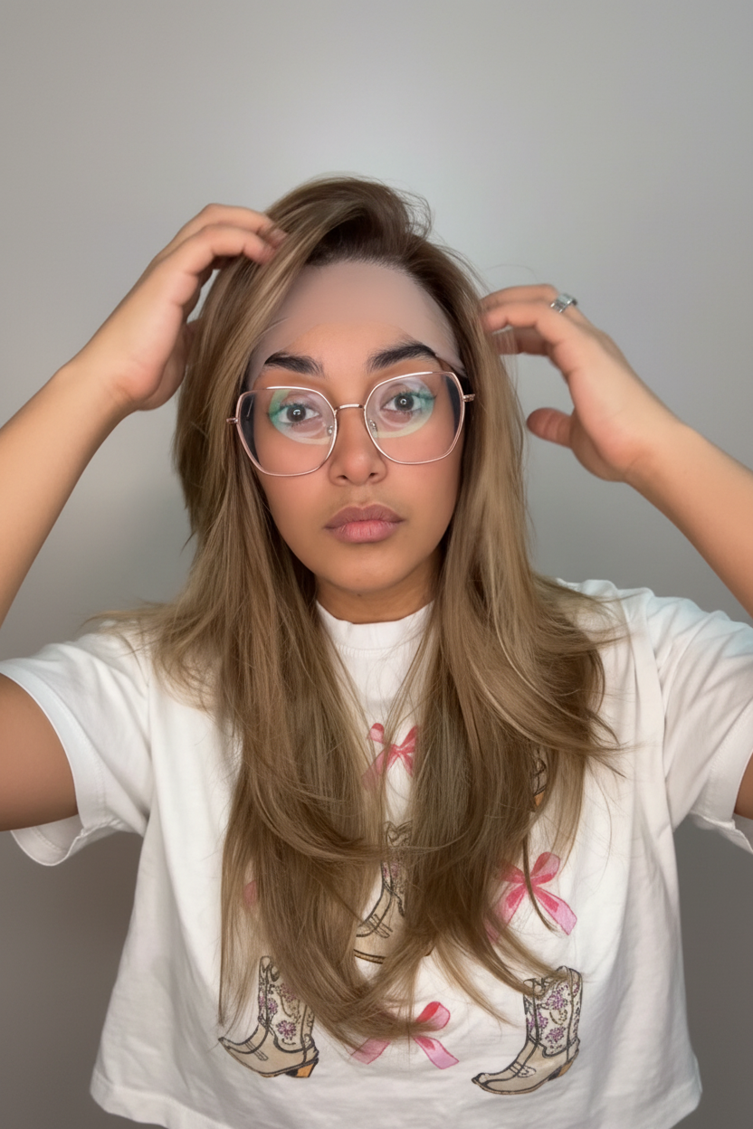 A warm honey brown base blended with subtle golden caramel undertones. The color is soft and natural—not too dark, not too light—perfect for everyday wear. It mimics a realistic salon blowout and flatters a wide range of skin tones.